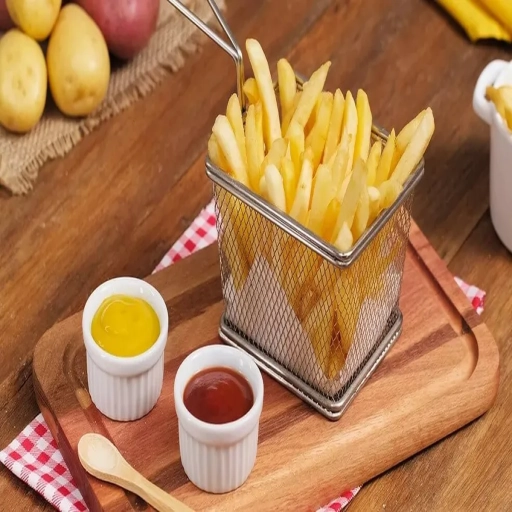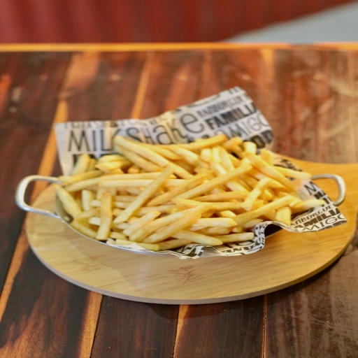 200 a 220 gramas de batata frita, acompanhamento de molho maionese da casa e molho barbecue picante.