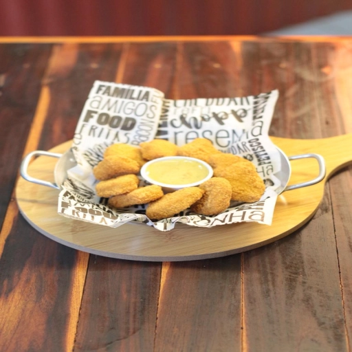 nuggets de frango são 10 unidades acompanham molho especial da casa.