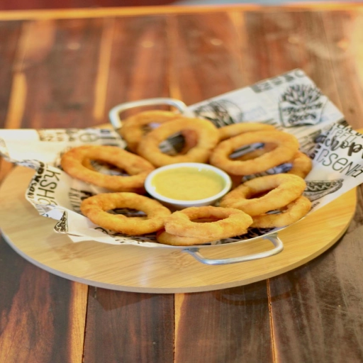 oneis de cebolas empanados com 13 unidades , acomapanha molho especial da casa.